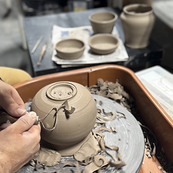 Ready to get muddy and learn the fun-damentals of wheel throwing? This course teaches students the basics of wheel throwing, from centering to forming simple shapes, to trimming and making handles. On the last day of the session, students will learn how to glaze, finishing their works. This class is designed for beginners with no or very little experience. If you have taken this class before, you are welcome to take it again. You can take this class more than once. Repeating this class will help further establish your wheel-throwing skills. This course includes clay, use of studio tools and 5 Open Studio passes, giving students extra time outside of class time to practice!